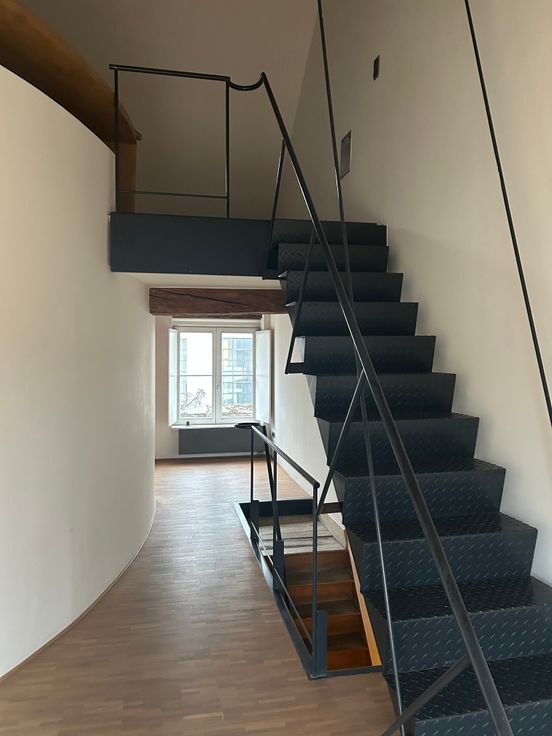 Op de eerste verdieping bevindt zich een duplex loftappartement, ingericht door arch. Bart Lens.