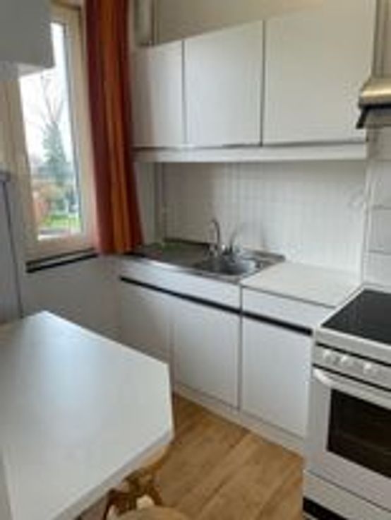 Grote studio/appartement in Centrum te Landen. Op 400 m van Trein en Busstation. 500 m van winkels en grootwarenhuizen. Op 5 minuten van E40 Brussel-Luik. Wagen parkeren op straat mits bewonerskaart. Gordijnen en overgordijnen aanwezig. Geen huisdieren toegestaan!