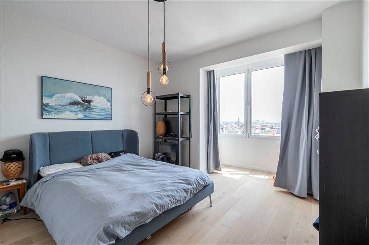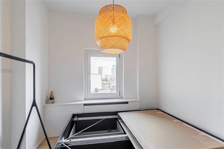 Op een boogscheut van het Eilandje bevindt zich dit instapklare appartement. Gelegen op de zevende verdieping geniet je hier van veel lichtinval en een uniek zicht over de omgeving, met het MAS als absolute blikvanger. Het maakt deel uit van een goed onderhouden gebouw van 8 hoog, waarvan het dak geïsoleerd is conform de norm 2050. De verwarming is collectief op stookolie. De elektriciteit is conform en verder is het appartement volledig gerenoveerd in 2020, waardoor je hier zonder al te grote werkzaamheden je intrek kan nemen. Een ideale opportuniteit voor wie zoekt naar een heerlijk plekje in de stad waar je zo kan intrekken! Je komt binnen en voelt meteen de open- en ruimtelijkheid die het appartement uitstraalt. Vooraan bevindt zich de woonkamer met open keukenhoek (50 m²) en grenzend hieraan staat er nog een berging ter beschikking. De lange hal leidt ons vervolgens naar de achterzijde van het appartement. Eerst kom je de aparte wc voorbij, gevolgd door de badkamer met douche, lavabo en handoekdroger. De eerste slaapkamer is 6 m² groot en aan de achterzijde bevindt zich de masterbedroom (16 m²). Tot slot staat er nog een privatieve kelderberging ter beschikking en is er een autostaanplaats optioneel mee aan te kopen. Bewoonbare opp. 100 m² ref.: bruto vloeropp. EPC-certificaat. Voor meer info of een gratis schatting surf naar www.hansimmo.beVoor meer info of een gratis schatting surf naar www.hansimmo.be