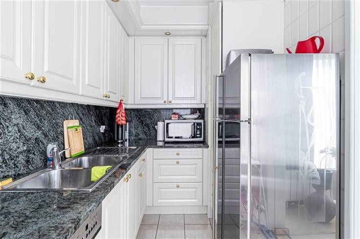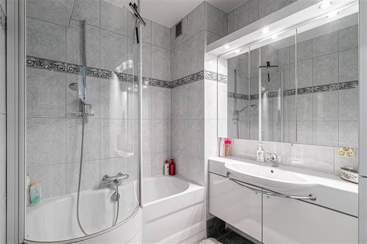 Instapklaar appartement (84 m²) met 2 slaapkamers en terras (5 m²) in Merksem. Het pand is gelegen op een boogscheut van de Bredabaan. Dankzij de gunstige ligging geniet je hier van een vlotte verbinding met bus, tram, velo en auto. Ook station-Luchtbal bevindt zich op wandelafstand, wat het een uitstekende locatie maakt voor wie pendelt met het openbaar vervoer. Het appartement bevindt zich op de vijfde verdieping van een verzorgd gebouw van 6 hoog, waarvan het dak in 2018 geïsoleerd is conform de huidige normen. De vaste kosten bedragen €412/kwartaal en omvatten water, lift, onderhoud van de gemeenschappelijke delen, syndicus en blokpolis. De verwarming is individueel op gas. In 2002 zijn in het appartement de keuken, badkamer, vloeren en radiatoren vernieuwd. Je komt binnen in de hal met ingemaakte vestiairekast. Aan de voorzijde situeert zich de woonkamer (33 m²) met aangrenzend de aparte keuken (6 m²) met basisuitrusting. Via een schuifdeur heb je toegang tot het oost-georiënteerde terras (5 m²). Centraal in het appartement treffen we de badkamer (5 m²) met ligbad/douche en lavabomeubel. De wc is apart. De 2 slaapkamers zijn 7 m² en 15 m² groot en bevinden zich aan de achterzijde. Tot slot staat er nog een privatieve kelderberging ter beschikking. Bruikbare vloeropp. 84 m² ref.: bruto vloeropp. EPC-certificaat. Voor meer info of een gratis schatting surf naar www.hansimmo.be