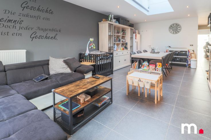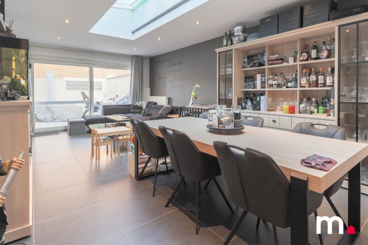 De open leefruimte en eetplaats beschikken over een lichtstraat die veel natuurlijk licht naar binnen brengt in de woning.