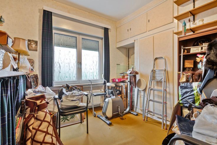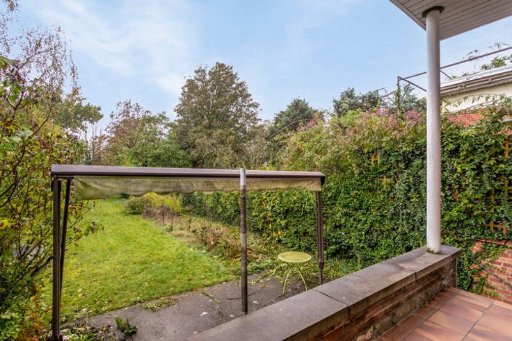 Gelegen op een boogscheut van het station van Ukkel Kalevoet, in een rustige groene straat. Dit gelijkvloers/ eerste verdiepings appartement bestaat uit een inkomhal, een woonkamer met eetplaats, een keuken, 3 slaapkamers en een badkamer. Vanuit de woonkamer heeft u een vlotte toegang tot de grote tuin met tuinhuis. De ruime garage alsook de autostaanplaatsen voor het gebouw horen bij dit appartement en zijn inclusief in de prijs. Het appartement beschikt ook over 2 kelderbergingen. Kleine mede-eigendom met maar 2 appartementen en geen syndicus.