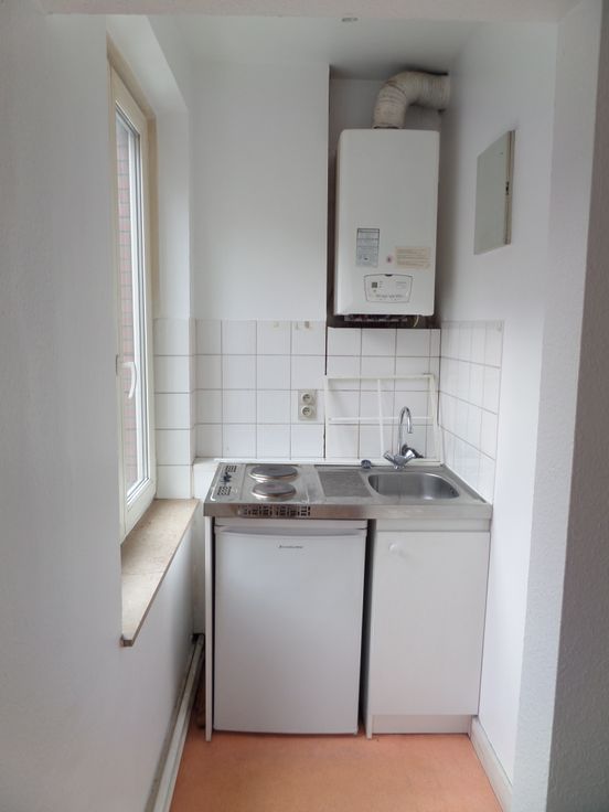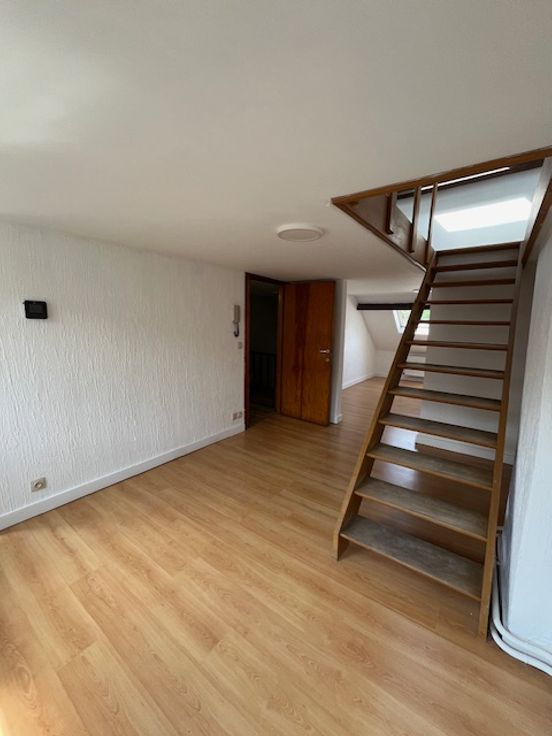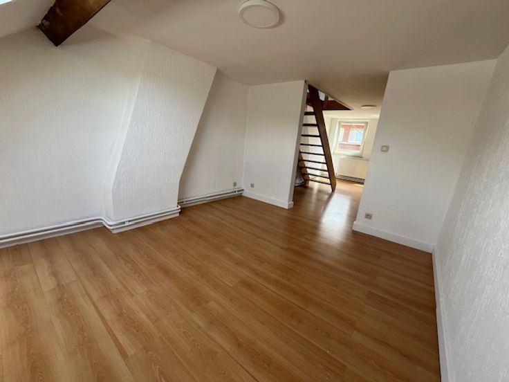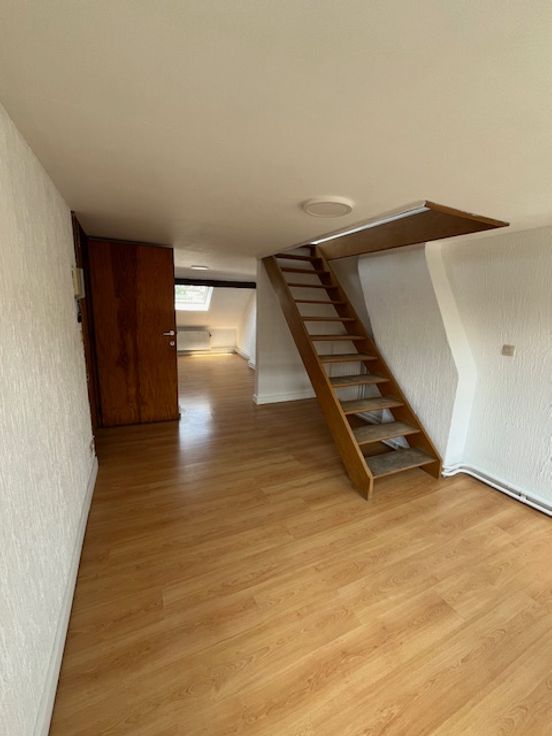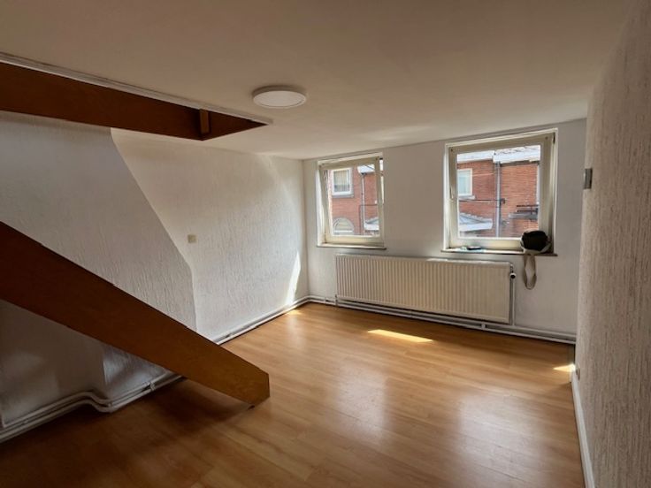 Ce duplex se situe au 2ème étage d'une maison composée de trois logements. Il est composé d'un hall, un living, une salle-à-manger, une cuisinette, d'une salle de bain et à l'étage d'une chambre. Il est très lumineux. Les 60 euros de charges sont une provision pour l'eau, l'électricité des communs et l'assurance.