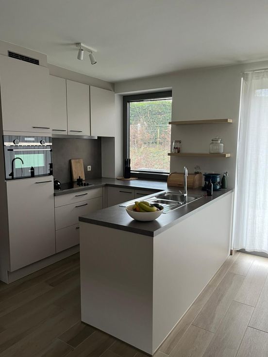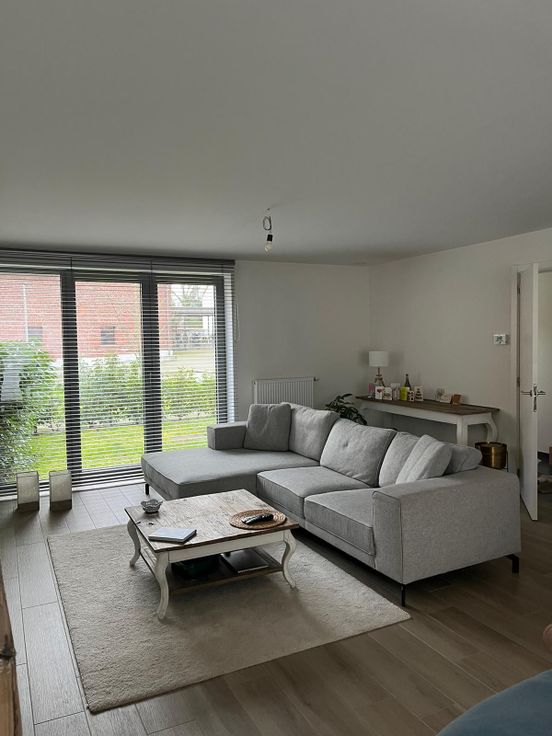 De woning beschikt over een ruime inkomhal met apart toilet, leefruimte met open keuken, aparte berging en tuintje met terras.