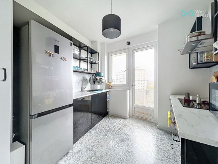 Gelegen op de 7e verdieping van een gebouw met 14 verdiepingen en een lift, bestaat het appartement uit twee slaapkamers, een ruime en lichte woonkamer met toegang tot een balkon, een volledig uitgeruste keuken met eveneens een balkon, een douchekamer en een apart toilet.