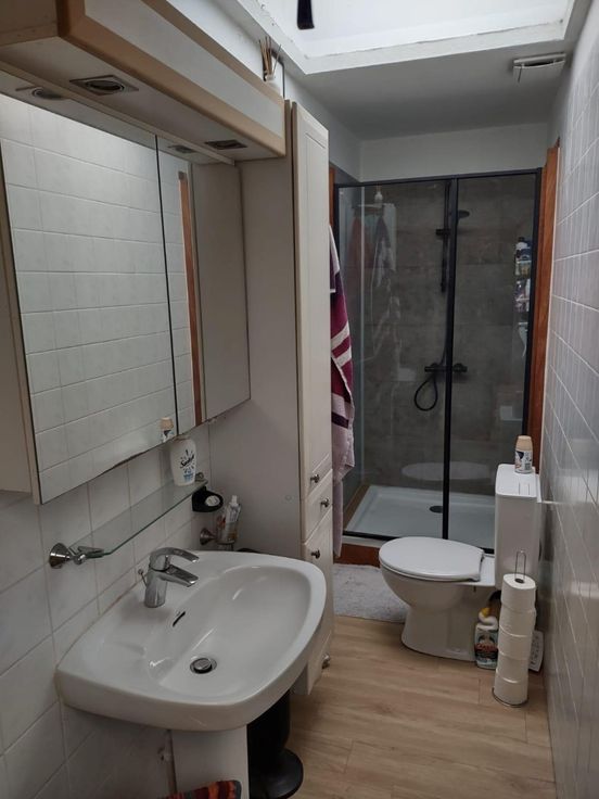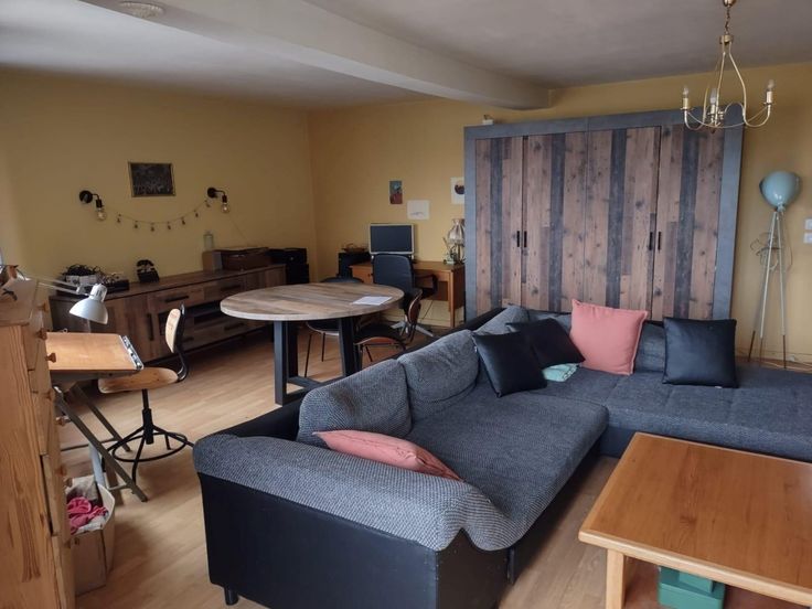 Het woongedeelte op de eerste verdieping bestaat uit een ruime hall, een grote leefruimte, afzonderlijke keuken, 1 slaapkamer en een badkamer met inloopdouche en toilet.