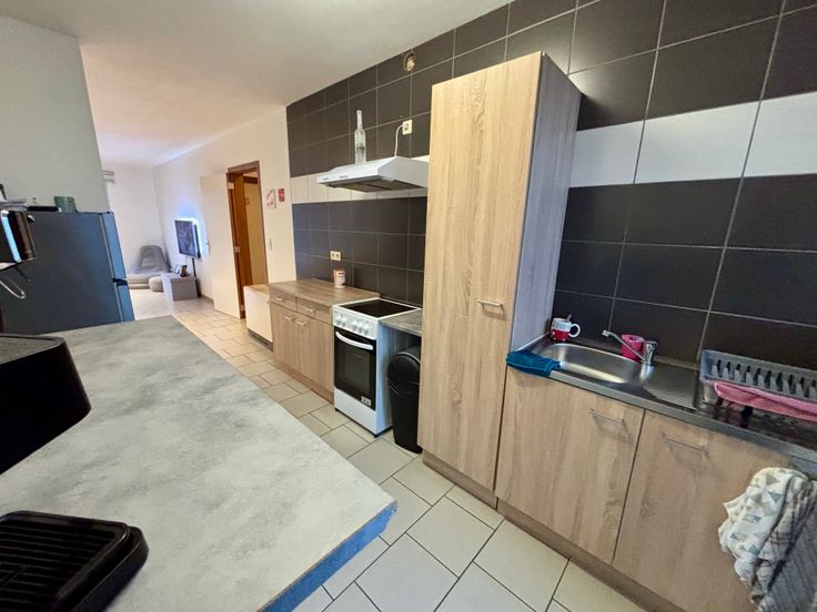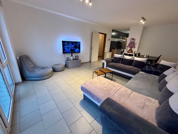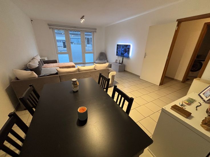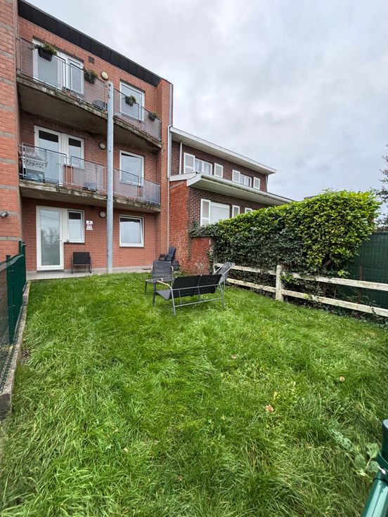 Découvrez cet appartement spacieux et lumineux . Il est composé d 'un hall d'entrée , un grand espace salon ouvert sur un espace salle à manger et sur un espace cuisine uniquement meublé ( pas d'électroménager ) , deux grandes chambres , une salle de bain avec baignoire / espace buanderie / WC . Un jardin , une terrasse et un emplacement de parking extérieur complètent cet ensemble .