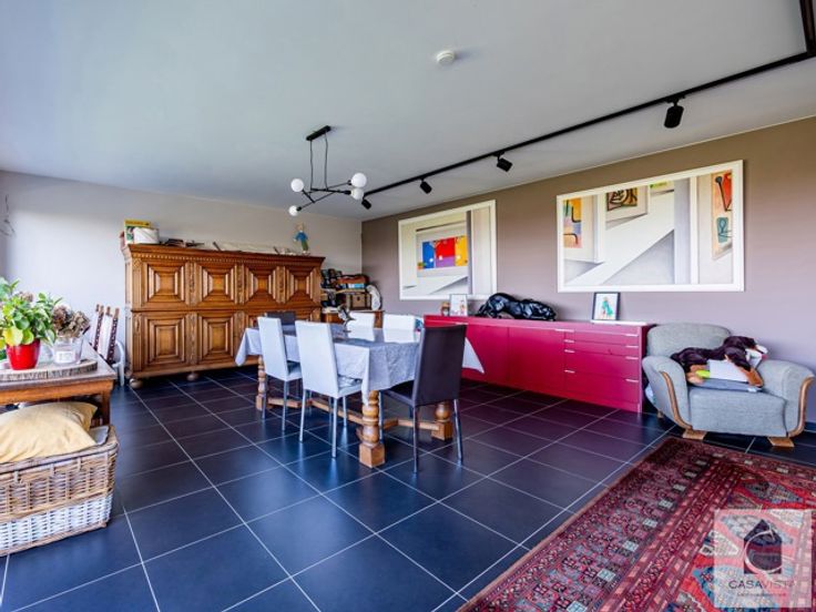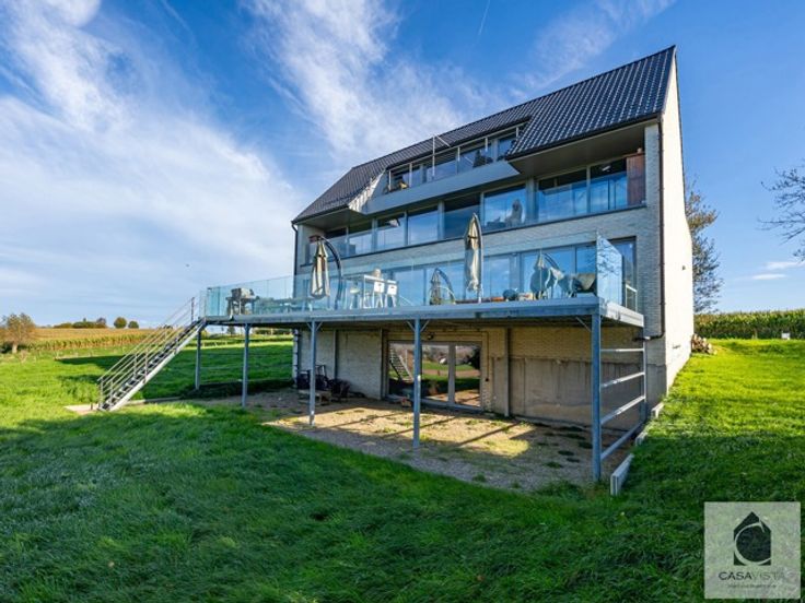 INDRUKWEKKENDE VILLA MET 4 BOUWLAGEN OP EEN LANDELIJK PERCEEL MET UNIEK PANORAMISCHE ZICHT. Voor dit soort woningen moet je in de Vlaamse Ardennen zijn. Gebouwd op één van de toppen van het glooiende landschap van Brakel, hier ter hoogte van Everbeek. De ruim 32are lijken veel groter door het uitgestrekte gevoel met alle specifieke elementen van natuur en agrarische activiteit aanwezig. Ook de woning is uniek in haar soort. Jonge constructie van 2011 gebouwd over 4 bouwlagen. Ook de kelder kan een woonfunctie krijgen door de proper gemetste muren, verscheidene ramen en toegangen tot de tuin en afgewerkte deurlijsten. Het gelijkvloers, waar alle deuropeningen breder gemaakt zijn met het oog op een zorgfunctie, bevat een ruime inkomhal met gastentoilet, daarna de grote leefkeuken en gekoppelde was/bergplaats en dan een leefruimte met daarin nog een ingerichte slaapkamer en eigen badkamer. Al deze ruimtes hebben rechtstreeks toegang tot het gigantische zonneterras over de hele breedte van de achterzijde. Eerste verdieping is eveneens één grote leefruimte met daarin een geïntegreerde keuken en aparte volwaardige badkamer. Deze verdieping heeft een balkon met steeds het terugkerende adembenemende zicht. Op de tweede verdieping bevinden zich dan 2-3 logeerkamers en een overloop waar een (4de) toilet is maar waar alle leidingen voor een eigen badkamer klaarzitten. Ook hier een groot uitstekend zonneterras. De verwarming is op stookolie via een hoogwaardig BUDERUS systeem met combin