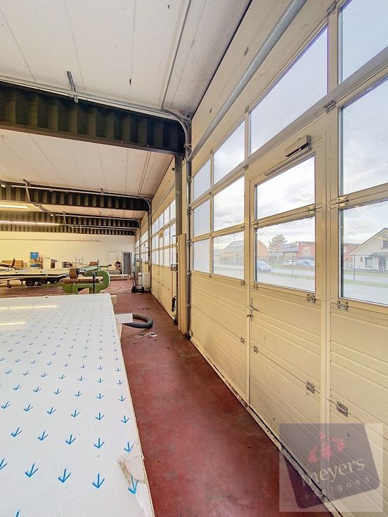 Aan de voorzijde bevindt zich een magazijn/werkplaats uitgerust met elektrische poorten én 2 hydraulische levelaars, ideaal voor efficiënte laad- en losprocessen.