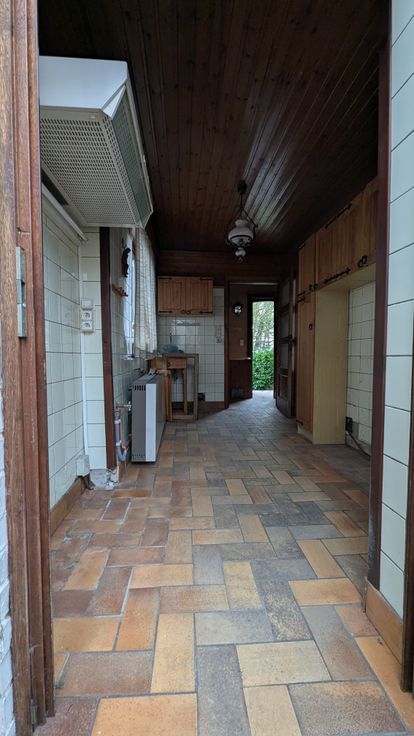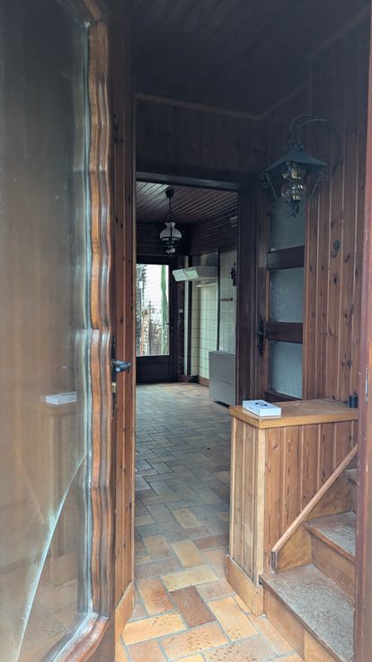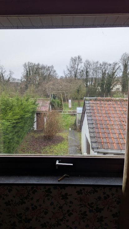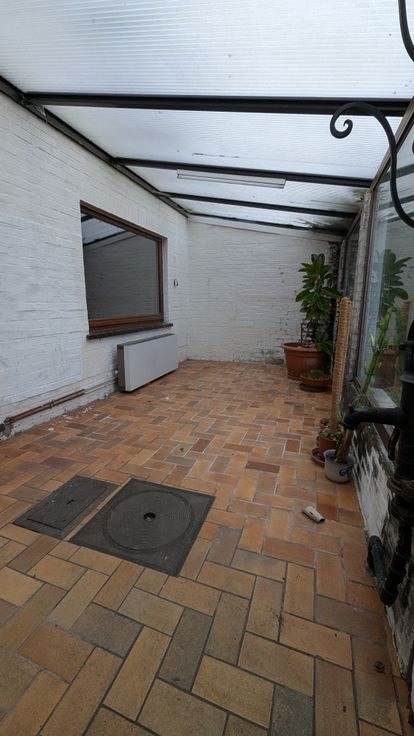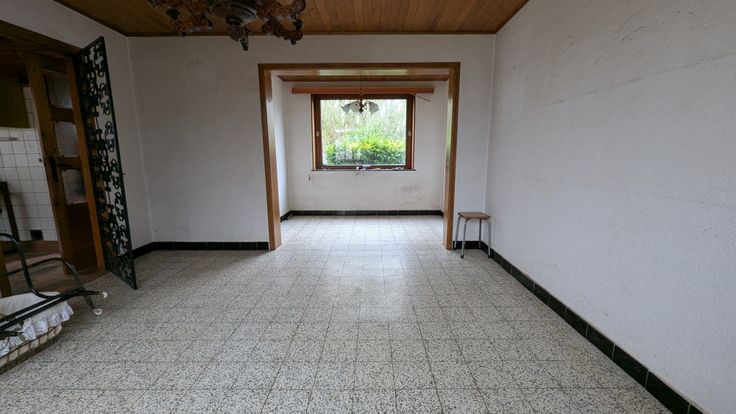 Au rez-de-chaussée : un hall d'entrée vous conduit vers la cuisine; celle-ci communique avec le salon. La cuisine mène vers la véranda.