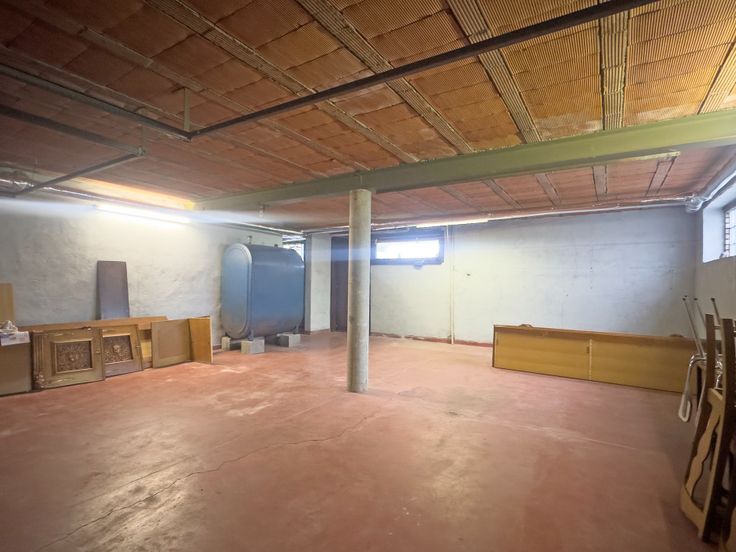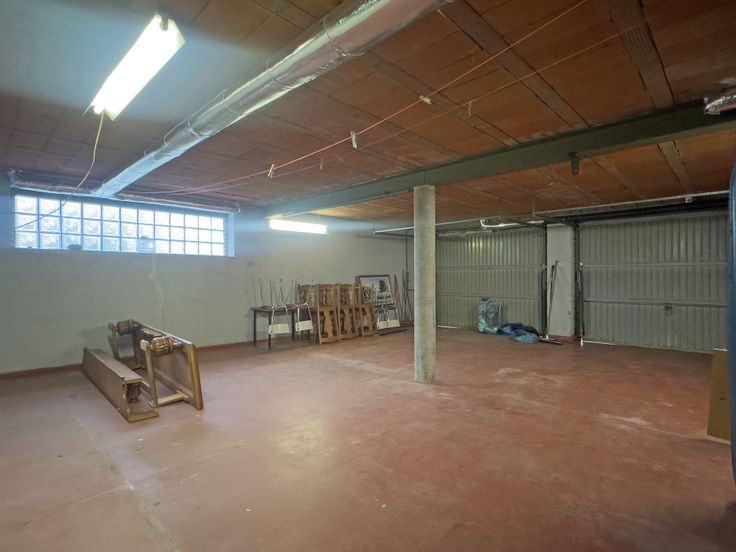Ruime garage (47m²) op het gelijkvloers voorzien van twee handmatige poorten, ideaal voor een zelfstandige activiteit/opslagruimte.