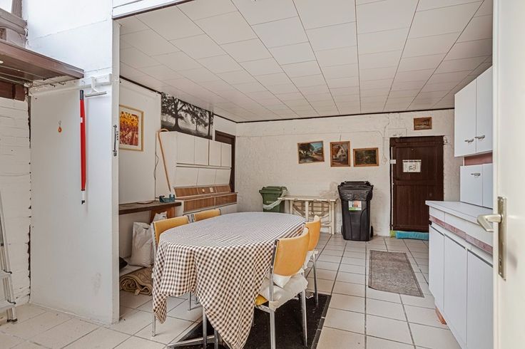 ALVERINGEM: Centraal gelegen maar wel op te smukken (rij)woning met dubbele garage die uitweg biedt achteraan, met 3 à 4 slpks en tuin op 288m² totale grondopp.  Waar is de tijd dat iedereen trouw naar zijn of haar kapper in het dorp zelf ging?... Begin jaren '70 van de vorige eeuw startte de verkoper van dit pand een eigen kapsalon op. Na meerdere decennia in het kappen van heren en dames is dit eigendom nu op zoek naar een nieuwe eigenaar die de zaak misschien wel wilt verder zetten of die er een nieuwe bestemming aan geeft. Gezien de ruimte en de ligging van het pand zijn er dan ook heel wat mogelijkheden, zowel naar handel/winkel/vrij beroep als naar woonst. Wandelt U even mee? - In de huidige indeling komt U binnen in een onthaalruimte waar aan de ene kant de heren zich lieten kappen en waar aan de andere kant de dames zich lieten kappen. De volledig indeling van deze ruimte is echter gedaan met valse wanden, dus deze ruimte kan gemakkelijk omgetoverd worden tot één grote open ruimte (ca 50m² in totaal). Via een tussenruimte is er doorgang naar de kelder, naar het eerste verdiep en de andere ruimtes op het gelijkvloers. De woonkamer en keuken zijn ingericht in een authentieke sfeer en gezelligheid. Na het apart toilet is er een wasplaats/C.V.-berging. Tot slot treffen we eigenlijk 2 garageruimtes aan waarvan er nog 1 dienst doet als garage en de andere meer als berging (met o.a. de gekeurde stookolietank). Via de garage is er dus toegang achteraa... Renovatieplicht: nee