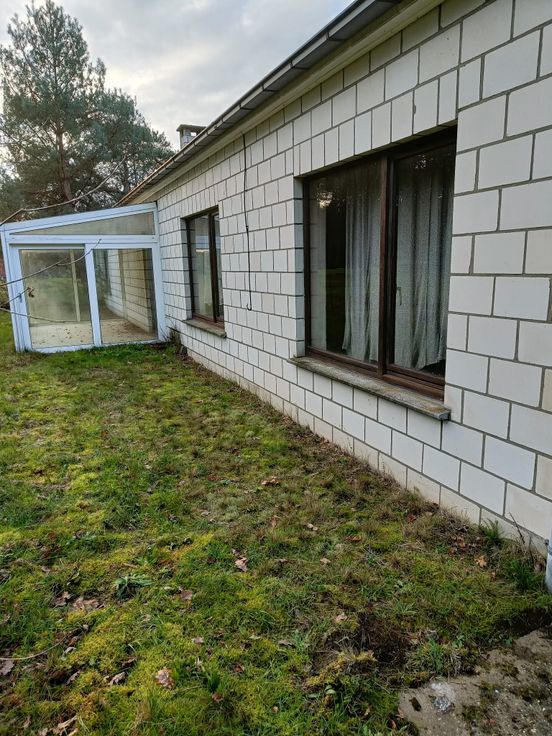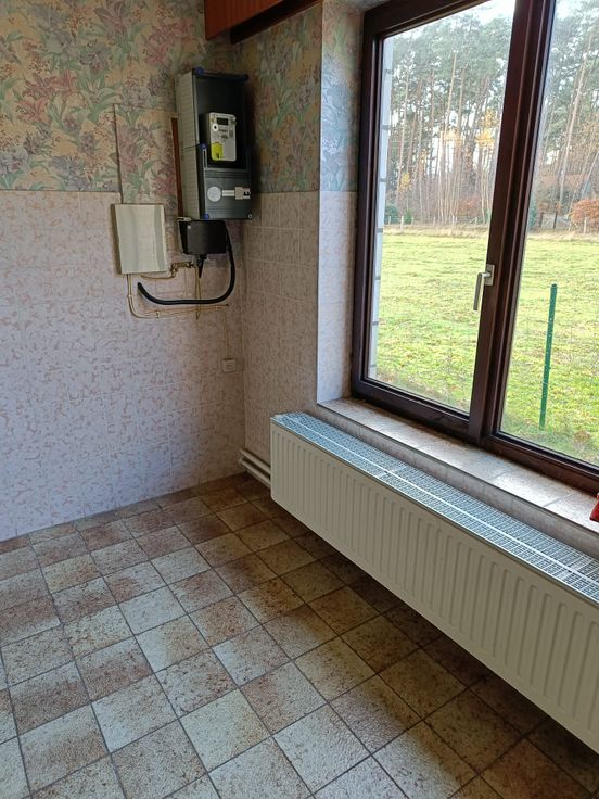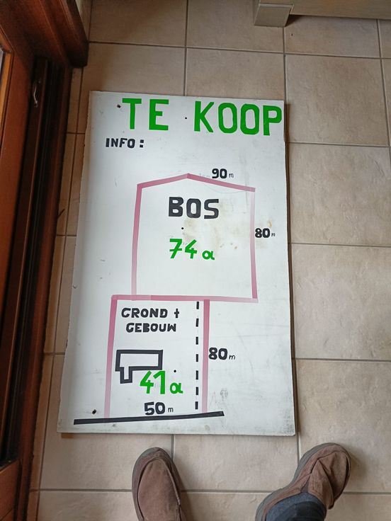 grond 41 are + gebouw 95m2. Bosgebied. Waterleiding (stadswater), elektriciteit en CV op mazout (ketel Buderus). Eveneens kachelaansluiting.