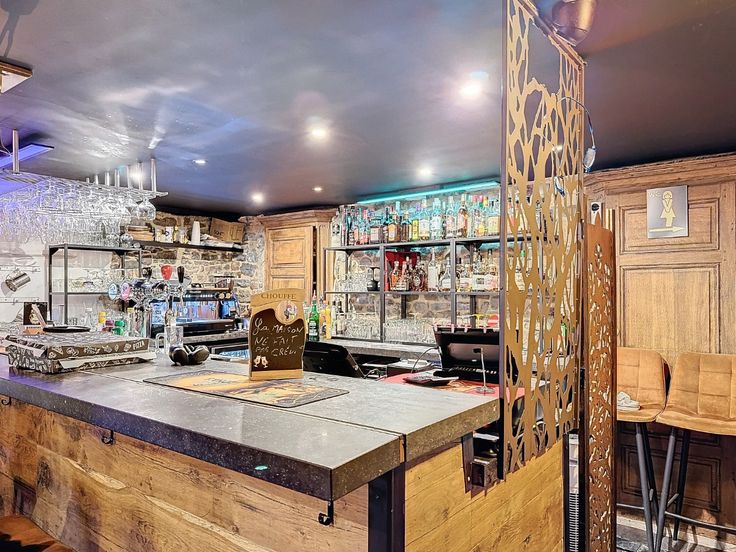 De zaak wordt momenteel gebruikt als café (Au Pot d'Or) en omvat naast de begane grond van 90 m² een klein appartement met 1 slaapkamer van 55 m², een kelder met een biljarttafel en nog een opslagkelder.