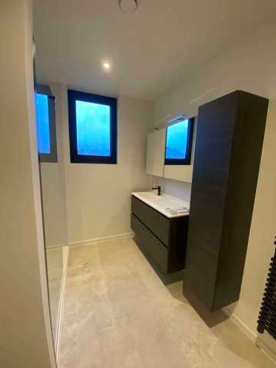 Op de eerste verdieping zijn er 3 slaapkamers en een badkamer met een inloopdouche, lavabo en toilet.