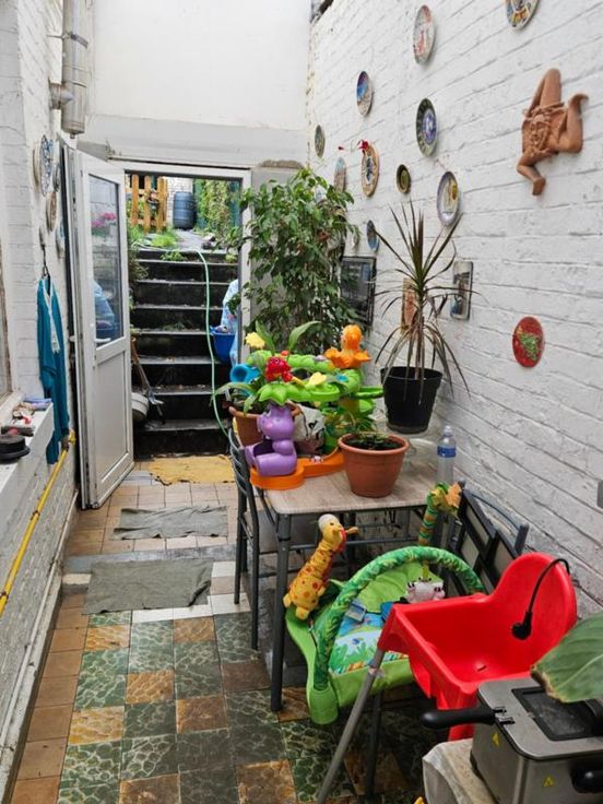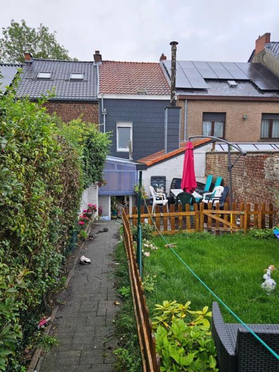 Maison d'habitation située dans un quartier calme composée : au rez-de-chaussée : une pièce à usage de bureau, un petit living, une cuisine en annexe, une cour arrière couverte / 1er étage : 2 chambres - une salle de bain / Grenier aménageable / Volets à l'avant / Garage dont accès via rue Borneau (RC : 69€)