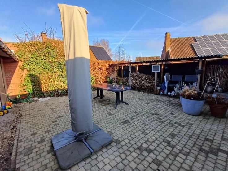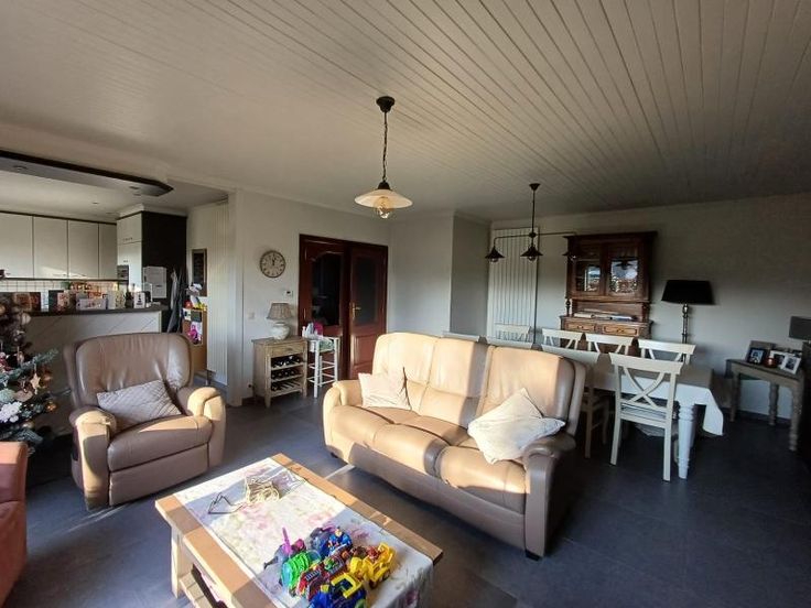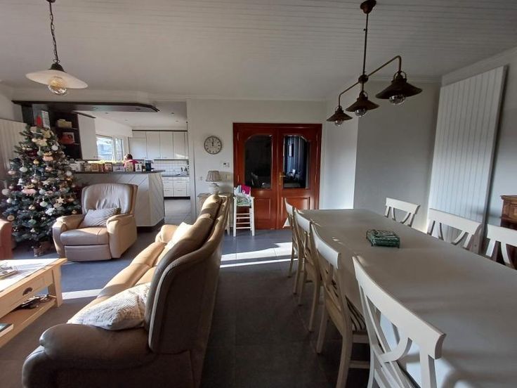 De woning bestaat uit: Inkom, ruime living met open keuken (2 diepvriezers, dampkap, oven, microgolfoven, keramische kookplaat, dubbele spoelbak), nachthall, berging/wasplaats, toilet, badkamer met dubbele lavabo en douche, 3 slaapkamers, grote veranda met ingemaakte kasten voorzien van verwarming en airco Overal rolluiken voorzien Buiten: Terras/koer, garage, overdekte berging Tal van zaken werden vernieuwd o.a. nieuwe vloeren, nieuwe nutsleidingen, nieuwe schouw, nieuwe hoogrendementsketel, nieuwe haard, nieuw bad en airco G score: A P score: D