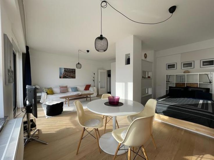 Dicht bij de ULB studio ONGEMEUBELD goed verlicht bewoonbaar onlangs met inbegrip van een inkomhal met kleedkamer, een woonkamer, een uitgeruste keuken, een badkamer, een open slaapkamer, een Zuid-terras met zeer mooi uitzich. Om te zien!