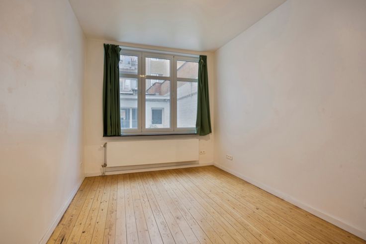 Op te frissen appartement van ca. 70m² tegenover de prachtige Onze-Lieve-Vrouw-ter-Sneeuwkerk. Indeling: Rustig gelegen appartement op het gelijkvloers van een kleinschalig gebouw. Via de inkomhal heeft men vooraan toegang tot de leefruimte op houten vloer. Centraal, de ruime keuken voorzien van een koelkast, oven, dampkap, kookplaat met dampkap, een dubbele spoelbak en voldoende opbergruimte alsook voldoende plaats voor een eettafel en stoelen. Via de keuken heeft men toegang tot de gezellige (ZW) tuin/koer met achteraan een berging die kan dienen als klein atelier. Achteraan, de nachthal met toegang tot de technische berging, alsook tot de badkamer voorzien van een douche, een toilet en een badkamermeubel met een wastafel. Ten einde van de hal, de grote slaapkamer op houten vloer met zicht op de tuin/koer. Bijzonderheden: Lage maandelijkse kosten (Onderhoud/verbruik algemene delen). Ligging: Uiterst rustig gelegen dichtbij allerlei winkels, restaurants, scholen, openbaar vervoer, vélostations en op slechts 15minuten wandelen van het Koningin Astridplein / centraal station en de Meir.
