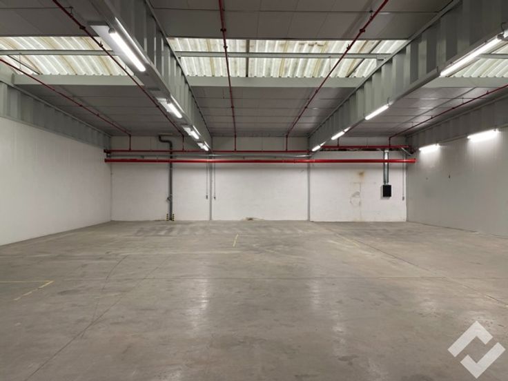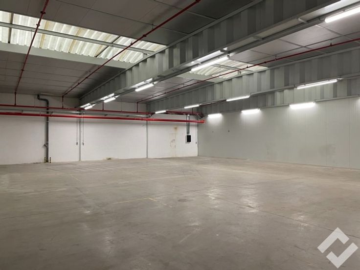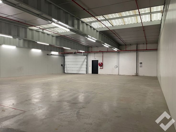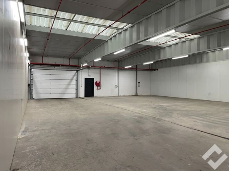 Het gebouw is opgetrokken in staalconstructie en geïsoleerde panelen. Er is een bruikbare vloeroppervlakte van 300m2 met voorzieningen zoals automatische sectionaalpoort, gepolierde betonvloer, stroompunten (220V/380V), sprinklersysteem en voldoende verlichting. Er is een vrije hoogte van ca. 4,5m onder dak (3,6m onder overspanning). De site zelf is voorzien van parkeerplaatsen, voldoende buitenverlichting en is tevens volledig omheind. Deze unit staat onder een overdekte luifel zodat er steeds droog geladen en gelost kan worden.