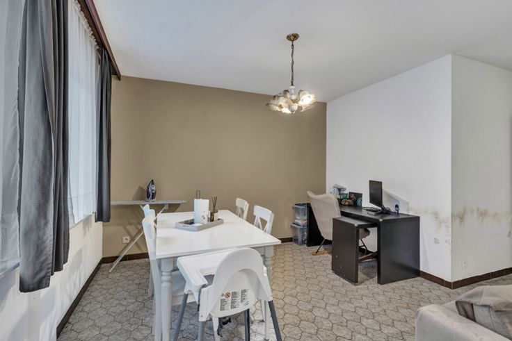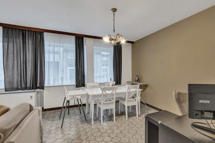 Voor meer info of een bezoek, bel 054 69 39 36 - Nabij het treinstation bevindt zich dit gelijkvloers appartement. Winkels, scholen en openbaar vervoer bevinden zich in de omgeving. De oprit E-40 bevindt zich op enkele minuten rijden. GEEN RENOVATIEVERPLICHTING. Voorlopig is het pand verhuurd. Ideaal voor investeerders dus, maar ook voor jonge koppels of alleenstaanden.. De indeling; een inkomhal, living, keuken, berging, slaapkamer en badkamer. Tevens beschikt men over een terras en garage. Buitenschrijnwerk in PVC met dubbele beglazing - Geen lift - Elektriciteit conform.