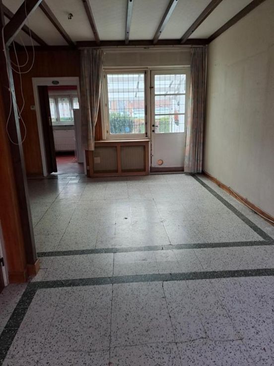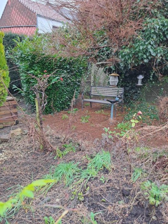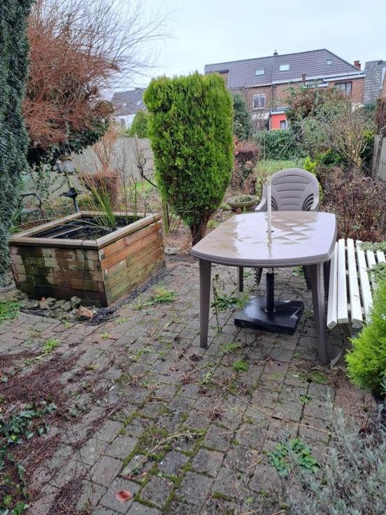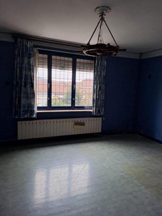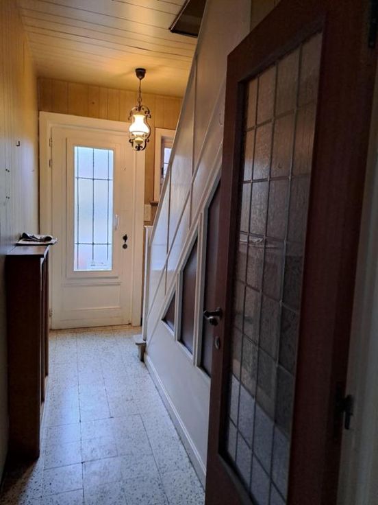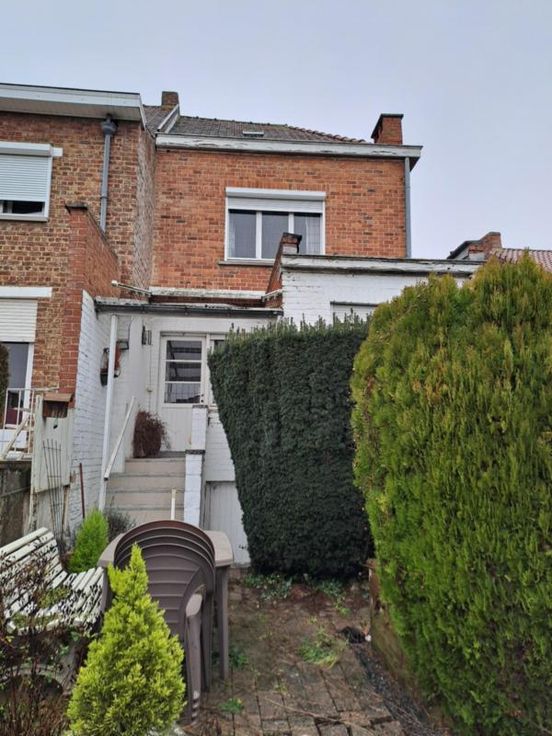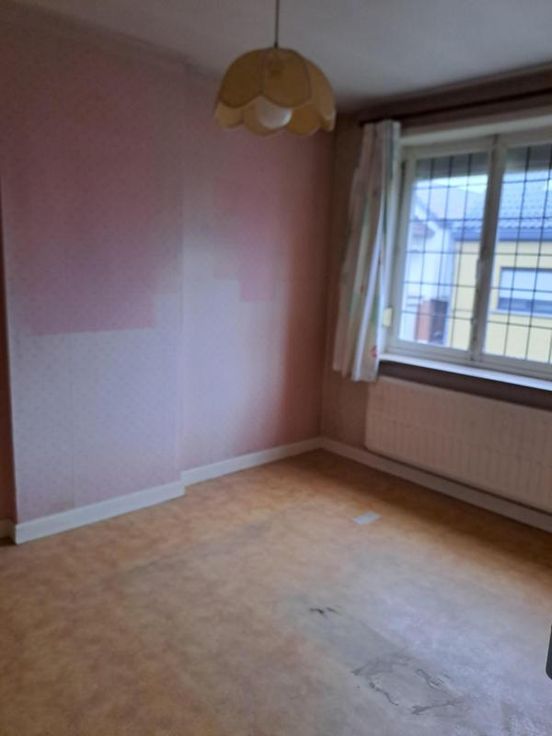 Maison bel étage comprenant : REZ : hall, salon, salle à manger (avec cheminée en pierre), cuisine non équipée, WC séparé avec lavabo. ET : 2 chambres, salle de bain (à rénover) comprenant baignoire, lavabo et WC, accès au grenier par trappe. EXT : terrasse, jardin avec fontaine. DIVERS : toiture (récemment revue), volets partout, passage latéral avec porte, cave, chaudière à remplacer, garage (porte manuelle en bois), raccordement à l'égout et au gaz de ville.