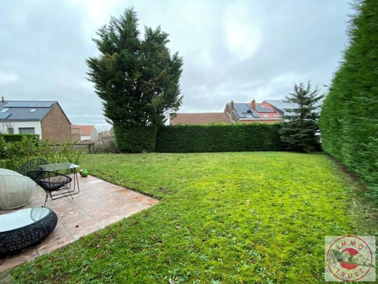 Situé à proximité de l'OTAN, des transports et commerces, superbe appartement RDC de 100m² comprenant un séjour de 40m², une cuisine US super équipée, 2 chambres, une salle de bain, une buanderie, une terrasse et un grand jardin de 400m². Charges de 150€ pour les communs et l'eau. Possibilité de louer un grand garage box pour 150€. PEB B. Libre. A voir sans tarder !!