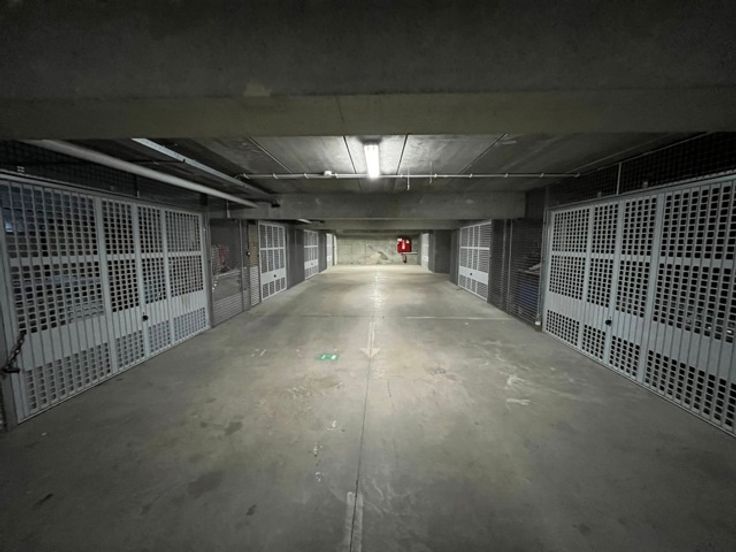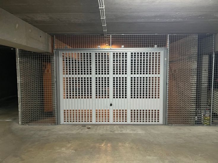 Allée des oiseaux à Mons. Grand garage électrique de 25 m² pour tout type de voiture + rangement à vélo ou autres. Le garage se trouve dans un emplacement privé et protégé.
