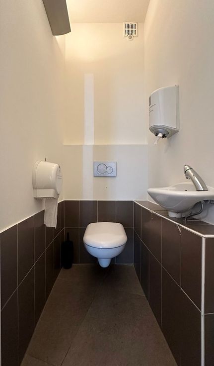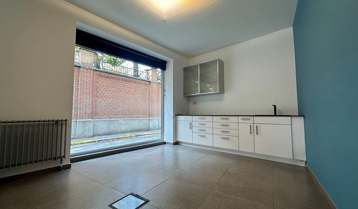 Indeling: ruime gemeenschappelijke inkomhal, wachtruimte (25m²), grote praktijk/kantoorruimte, ingerichte keuken (20m² - inclusief SMEG-kookplaat, koelkast....), sanitair H/D, archief in kelder (20m²), mogelijkheid tot aankoop autostaanplaats