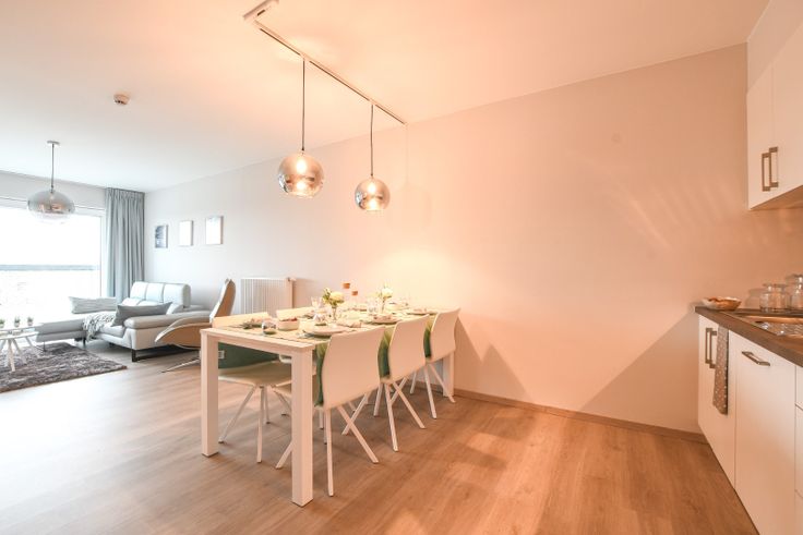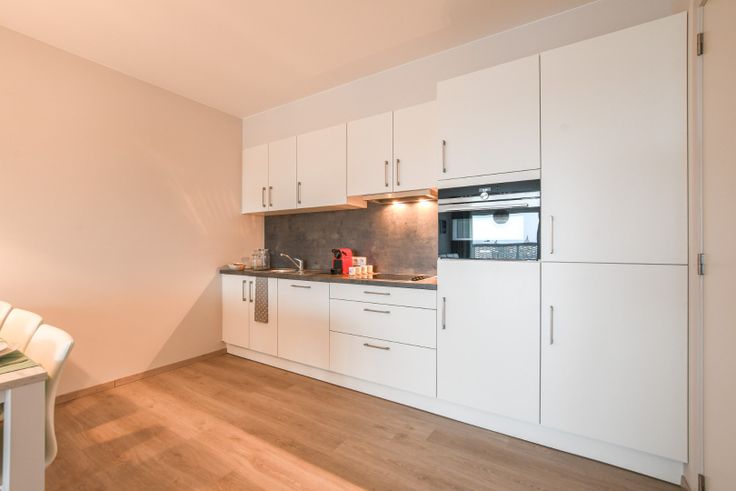 De woonkamer en open keuken vormen een ruime, lichte ruimte van meer dan 34 m², ideaal voor zowel ontspanning als koken. De woonkamer is voorzien van laminaat en heeft veel natuurlijk licht door de ramen. De open keuken is volledig uitgerust met Siemens-apparatuur: een elektrische kookplaat, dampkap, combioven, koelkast met vriesvak en een vaatwasser.