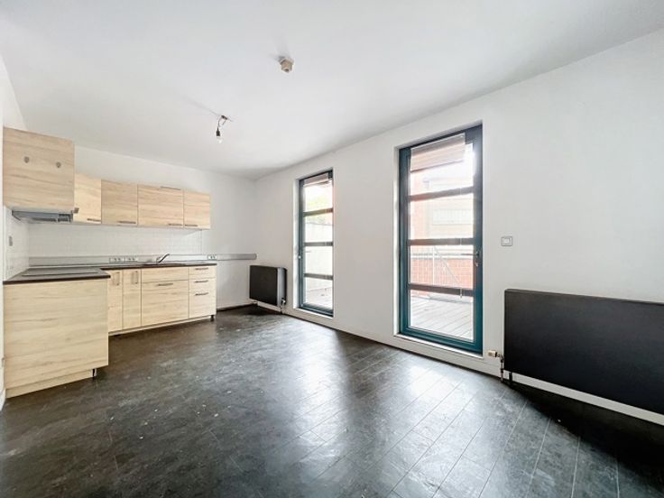Idéalement situé Rue Stanislas Degrelle à Jette, ce duplex offre deux surfaces de 45 m² chacune, réparties entre le rez-de-chaussée et le niveau -1.