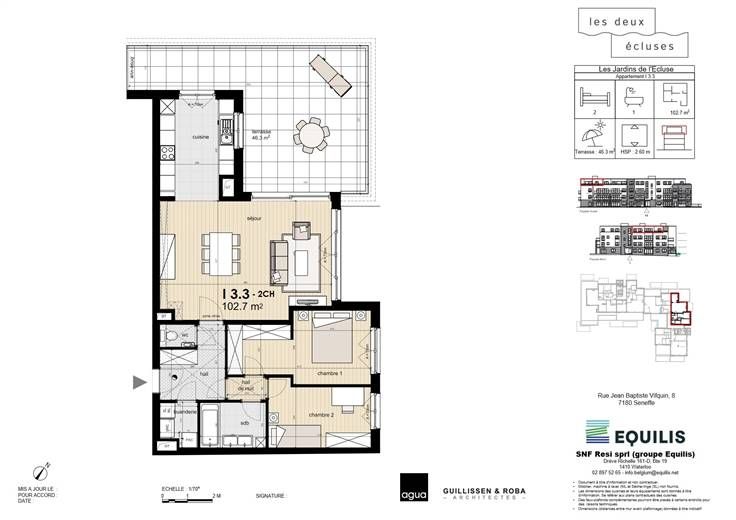 Ontdek dit appartement (ref I.3.2 ) in zijn idyllische omgeving aan de poort van Waals-Brabant (5' van Nijvel) en op een boogscheut van 5 grote wegen. De urbanisatie Les Deux Ecluses heeft het allemaal: gelegen in een groene oase tussen het kanaal en de wandelpaden, op loopafstand van winkels en vervoersverbindingen. Dit lichte appartement met 2 slaapkamers is een uitstekende investering en heeft ook een groot terras van 46,3 m². Alle voorzieningen (keuken, elektriciteit, badkamers, tegels en parketvloer) zijn in de prijs inbegrepen, behalve het schilderwerk. Uitstekende isolatie, liften, maximaal 3 verdiepingen, parkeerkelder en kelders (tegen betaling). Contacteer ons voor meer informatie Les Viviers new@lesviviers.be of 010 24 2