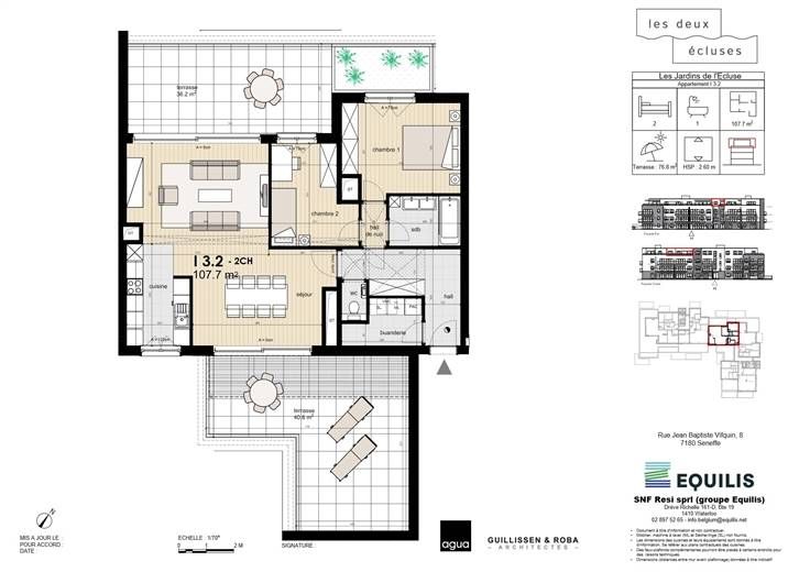 Ontdek dit appartement (ref I.3.2 ) in zijn idyllische omgeving aan de poort van Waals-Brabant (5' van Nijvel) en op een boogscheut van 5 grote wegen. De urbanisatie Deux Ecluses heeft het allemaal: gelegen in een groene oase tussen het kanaal en de wandelpaden, op loopafstand van winkels en vervoersverbindingen. Dit lichte appartement met 2 slaapkamers is een uitstekende investering en beschikt over een groot terras van 76,8 m². Alle voorzieningen (keuken, elektriciteit, badkamers, tegels en parket) zijn in de prijs inbegrepen, behalve het schilderwerk. Uitstekende isolatie, liften, maximaal 3 verdiepingen, parkeerkelder en kelders (tegen betaling). Neem contact met ons op voor meer informatie Les Viviers new@lesviviers.be of 010 24 2