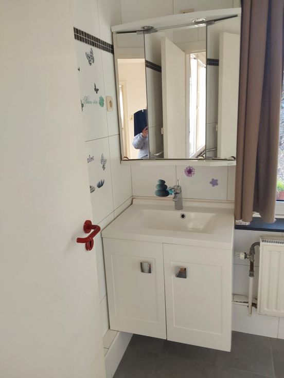 Comprenant cuisine équipée, living, 1 grande chambre et une petite, 1 salle de bain avec douche , lavabo, meuble et 1 toilette.