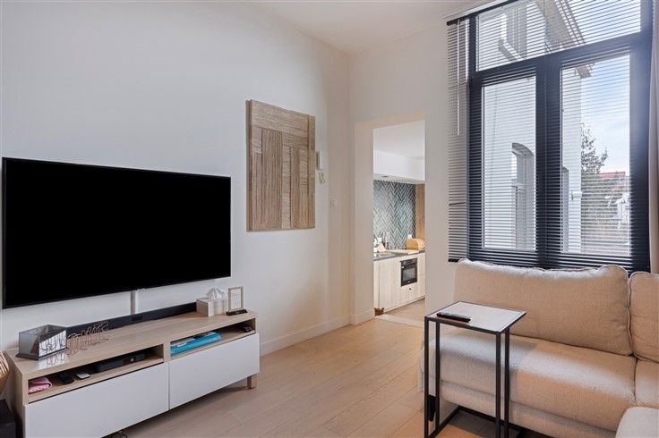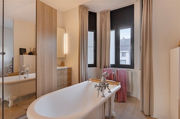 Luxueus gerenoveerd instapklaar appartement Dit appartement is gerenoveerd in 2022 en geniet van hoge plafonds, veel lichtinval en kwalitatieve materialen wat zorgt voor een aangename fijne woon ervaring. Eveneens is er in dit kleinschalig gebouw geen syndicus aanwezig wat er voor zorgt dat er GEEN gemeenschappelijke kosten zijn. Indeling - Binnenkomen doen we in de mooie inkomhal waar de hoge plafonds meteen opvallen. - De keuken is uitgerust met hoogwaardige materialen en toestellen (ijskast, vriezer, combi-oven, vaatwas), een waar paradijs voor elke kookliefhebber. - Een ruim apart toilet waar zich ook de aansluiting voor wasmachine en droogkast is voorzien. - Een knusse leefruimte met veel lichtinval, hoge plafonds en een kwalitatieve parket vloer. - De prachtige slaapkamer is een oase van rust die is uitgerust met een luxueus vrijstaand bad. Extra Gustig EPC C Elek. Conform Geen gemeenschappelijke kosten Geen syndicus Mobiscore 9/10
