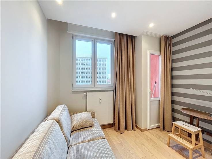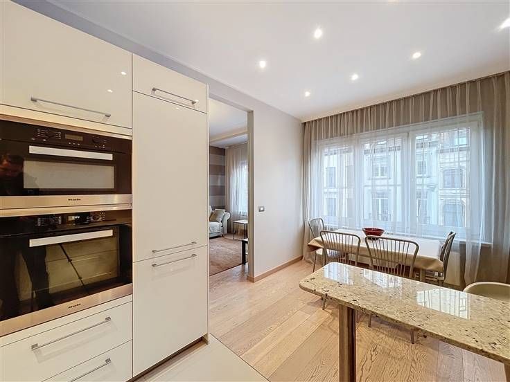 Face au Parc du Cinquantenaire, à deux pas de Schuman, au 2E étage d'un immeuble de standing avec ascenseur, superbe appartement deux chambres de ± 82m² bruts (PEB) avec balcon. Composition : vaste hall d’entrée, spacieux séjour de ± 18m², cuisine/salle à manger de ± 15m², hall de jour, 2 belles chambres de ± 13 et 8m² dont une avec balcon, salle de bains, cave. Détails : entièrement rénové, possibilité d’acheter avec les meubles, parquet, porte blindée, double vitrage, air conditionné, emplacement de parking à disposition des occupants. Charges : ± 315€/mois comprenant provision de chauffage, eau, communs, ascenseur, assurance, syndic. Idéalement situé au cœur du quartier européen, proche de toutes commodités : commerces, restaurants, espaces sportifs, parcs… Transports en commun : station Schuman, bus 27, 36, 59, 60, 80 et tram 81. Annonce et indications non contractuelles, sous réserve de modifications. Info : est@macnash.com – Tel : 02 779 99 99 – ID 272295