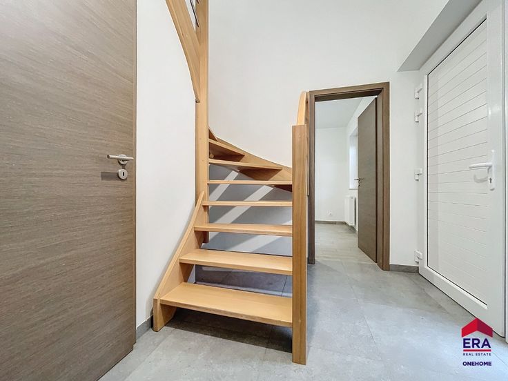 Deze zorgvuldig afgewerkte woning beschikt over een inkomhal, een ruime woonkamer, een volledig uitgeruste keuken, een wasruimte en een bureau. Op de bovenverdieping bevinden zich 3 slaapkamers, waarvan één met een dressing, en een doucheruimte.