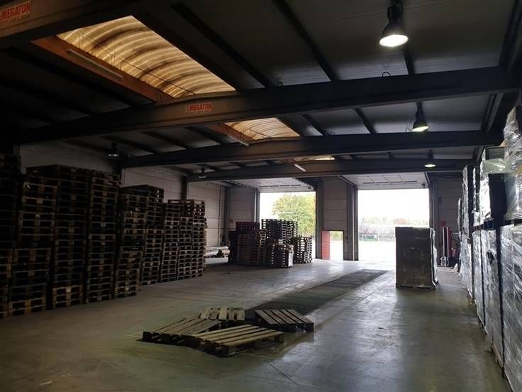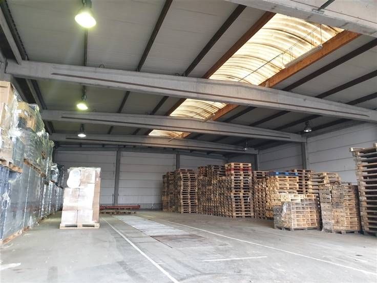 Magazijnen van ca. 540 m² met 180m² bijhorende ingerichte kantoren en +ca. 1.100 m² buitenterrein beschikbaar. Het magazijn is voorzien van sectionale poorten, verlichting en 3 fazige stroom. De kantoren zijn gelegen op het 2de verdiep, en zijn voorzien van een aparte vergaderzaal, keuken, apart sanitair en grote open ruimte. Gelegen in donkerpaarse industriezone Ringvaart-Durmakker, zowel opslag als industrie dus mogelijk. Nabij invalswegen R4 en N9 te Evergem, op 12km van E40 en 7km Gent centrum.