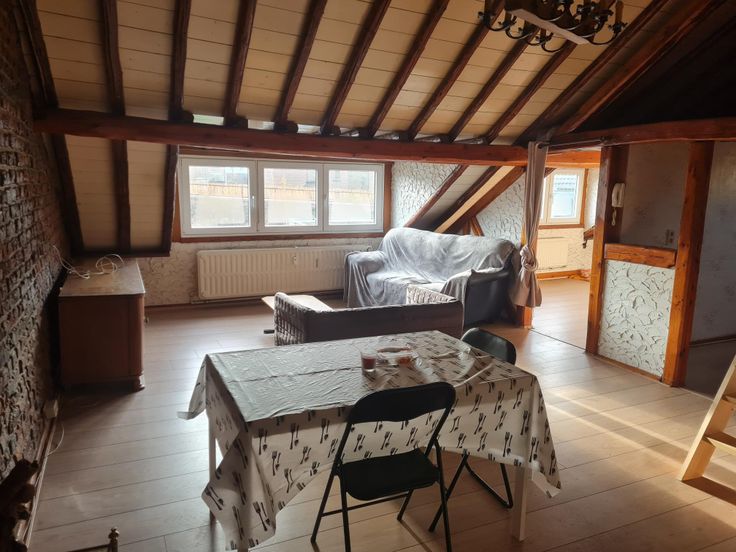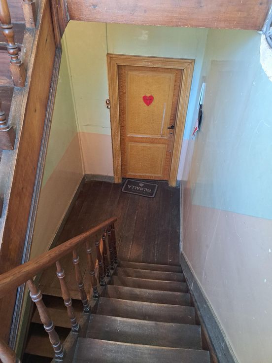 3ème ÉTAGE : appartement en mezzanine (66m²) composé d’un séjour, deux chambres, une salle-de-bain et une petite mezzanine (état délabré – libre d'occupation) double vitrage, PEB Classe G - 617 kWh/m²/an.