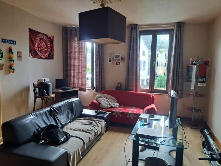 1er ÉTAGE : appartement (72 m²)composé d’un salon, une cuisine semi-équipée, une salle-à-manger (actuellement utilisée comme 2ème chambre), une chambre à l’arrière et une salle-de-bain. Châssis PVC double vitrage récent, PEB Classe E - 418 kWh/m²/an.