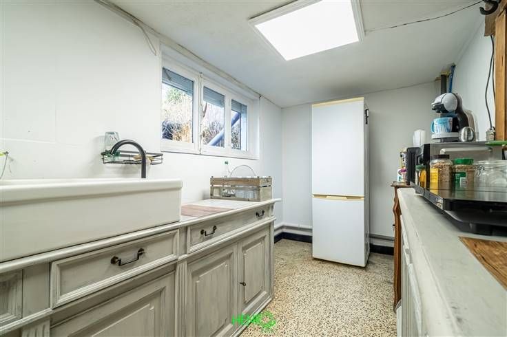 Sorry er is geen nederlandse vertaling beschikbaar. Laissez-vous séduire par cette ancienne fermette pleine de caractère, située dans une rue peu fréquentée, dans une impasse, à seulement 2 minutes des grands axes, alliant tranquillité et accessibilité. Rez-de-chaussée : ·Salon et salle à manger chaleureux, parfaits pour vos moments en famille. ·Cuisine semi-équipée, prête à être aménagée selon vos envies. ·Une chambre avec salle de bain attenante (douche à parachever), idéale pour un espace parental ou pour des invités. ·Une pièce polyvalente, idéale comme buanderie, bureau ou atelier. ·Une remise pratique pour vos besoins de rangement. ·Présence d'une cave au sous-sol. .