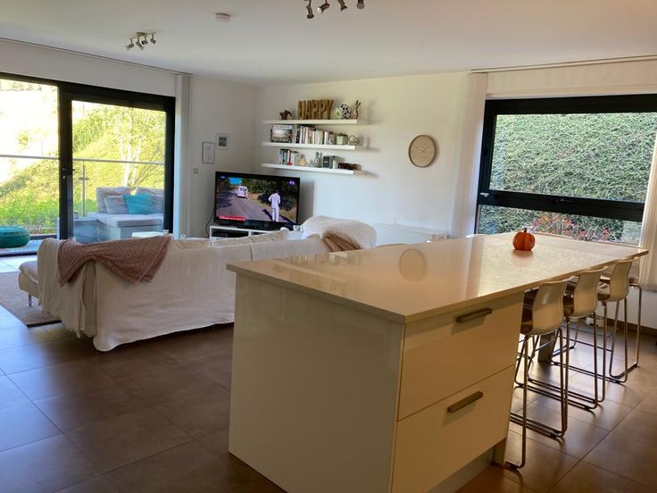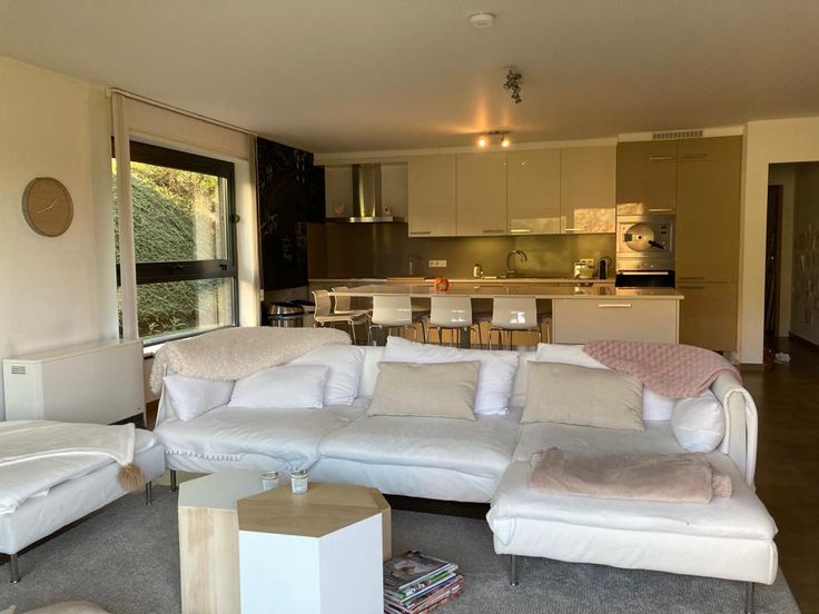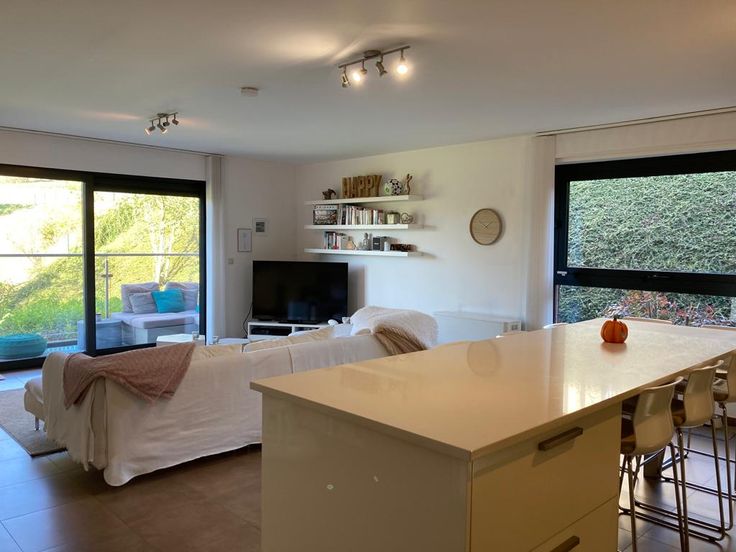 Appartement très lumineux de 94 m² avec 2 belles chambres, accès en rez-de-chaussée, vue dégagée sur l’héribus, hall, vaste séjour avec cuisine ouverte, super équipée, four, four vapeur, frigo, surgélateur,... salle de bain baignoire & douche, wc séparé, buanderie et terrasse.