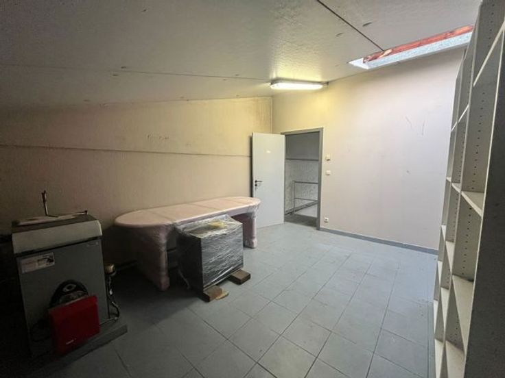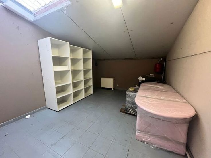 Op het gelijkvloers is het 1 grote open ruimte met een apart toiletje, daarnaast is er op het 1ste verdiep een aparte ruimte voorzien die kan dienen als bureau.