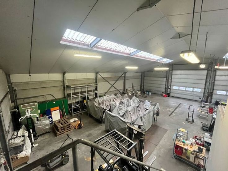 Het magazijn is voorzien van 3 poorten en een aparte deur aan de zijkant van het gebouw.