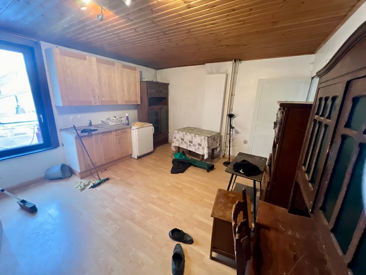 RDC commercial + appartement à l'étage. Informations et visites : Jean-Paul Cailleau 0475/430558 , IPI : 501255 Quaregnon : idéal pour commerce au RDC et appartement à l'étage. Actuellement restaurant équipé. Descriptif : RDC : Grande salle restaurant + bar. / Grand espace cuisine (équipée). / Espace plonge. / Espace WC. / Pièce remise sur l’arrière accès ext. Arrière du bâtiment. Etage : Une pièce sur l’avant (1). / Une pièce sur l’avant (2). / Une pièce sur l’arrière. / Une pièce douche avec WC. / Etage 2 : grenier aménagé + pièce chaufferie. Sous-sol : Cave Technique : Chauffage central gaz. / 2X vitrage. / PEB : C. / Adoucisseur d’eau. / Servitude sur l’arrière.