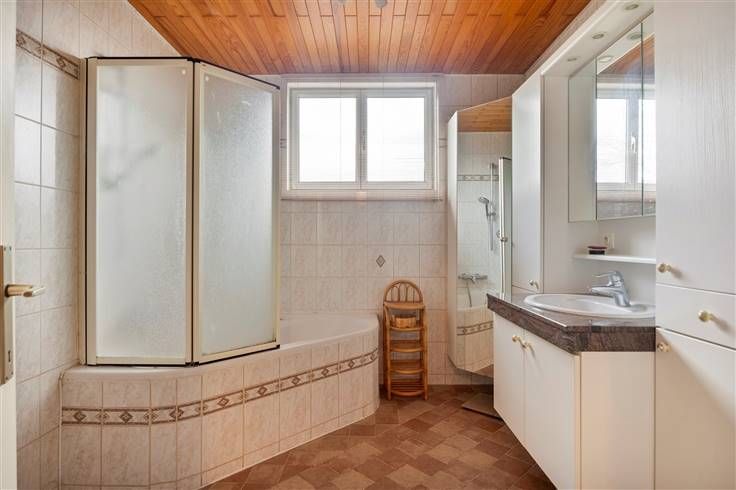 TE RENOVEREN VILLA MET 4 SLAAPKAMERS EN GARAGE IN RUSTIGE WOONWIJK. Woning bestaande uit: Inkomhal/traphal, gastentoilet, kelderberging (onder trap), ruime lichtrijke woonkamer met openhaard en toegang naar 2e eetplaats/salon (aanbouw 1981 - grote schuifraam naar tuin), ingerichte keuken, berging/wasplaats, garage. 1e verdieping: nachthal, 4 slaapkamers (2 grote en 2 kleinere), badkamer (hoekbad met douchewand en lavabomeubel), opbergzolder. Woning grotendeels voorzien van kruipkelder, dubbel glas, elektrische verwarming, reeds gesplitst rioleringstelsel, regenwaterput, tuin rondom de woning, aangelegde oprit naar garage. Woning asbestveilig, niet asbestvrij (geen verplichting tot verwijdering). EPC: Energetische renovatieplicht. Bezoek enkel mogelijk op afpraak met Immo-X via mail of via deze advertentie.