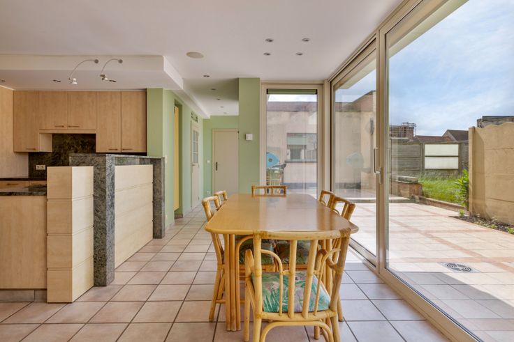 In het dorpscentrum van het landelijke Nieuwkapelle, een deelgemeente van Diksmuide, bieden we u deze zeer ruime halfopen gezinswoning aan. De woonst is gelegen in de Smissestraat, een rustige zijstraat, en situeert zich op een zongericht perceel van 388 m2 groot (zuid-westoriëntatie). Het eigendom bevindt zich in een degelijke en goed onderhouden staat en kan bovendien genieten van een gunstige energiescore van 265 kWh/m2jaar (energielabel C). Zo wordt er op heden verwarmd met centrale verwarming op aardgas. Daarnaast beschikt men over dak- en of plafondisolatie, muurisolatie en zijn de ramen voorzien van hoogrendementsbeglazing. Tot slot kan men tevens gebruik maken van een regenwaterput. Gezien de ruime woonoppervlakte en het grote aantal slaapkamers (7), is deze woning uitermate geschikt voor grote of samengestelde gezinnen. De indeling van de ruimtes is als volgt: Gelijkvloers: inkomhal - apart gastentoilet met handenwasser - bureel - traphal - woonkamer met ruimte voor zithoek en eetplaats - ruime, lichtrijke en volledig uitgeruste leefkeuken met grote raampartijen en zicht op de tuin - bijkeuken - toegang tot droge kelderberging - badkamer 1, voorzien van ligbad en lavabo (voute) - ruime, gelijkvloerse slaapkamer/polyvalente ruimte - douchekamer met lavabo - stookruimte/techn.ruimte - sas/gang - wasplaats/berging. Eerste verdieping: nacht- en traphal 1 - badkamer 2, uitgerust met toilet, douche en dubbele lavabo - masterbedroom met inge... Renovatieplicht: onbekend