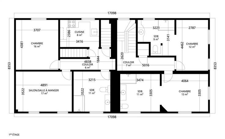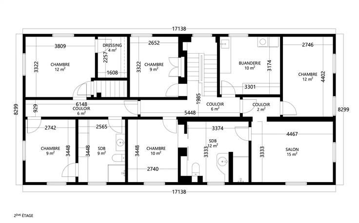 À l'étage, l'histoire continue avec deux chambres, chacune avec sa salle de douche. Le deuxième étage présente une suite somptueuse avec deux chambres, un salon et une salle de douche, un espace privé composé de deux chambres et d'une salle de douche. Pour compléter ce niveau, deux chambres indépendantes et une buanderie.