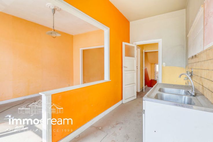 Situé sur la chaussée d'Alsemberg, au carrefour avec l'avenue de Messidor, immeuble mixte (commerce + 1 duplex 2 chambres) de +/-208m² (selon PEB), à rénover entièrement.