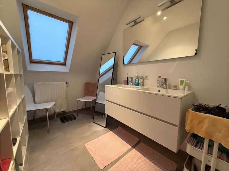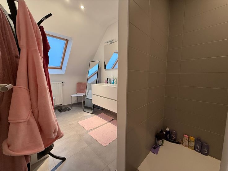 Tweede verdieping: 2 slaapkamers (15m² - 9m²) en badkamer (ingericht met inloopdouche en lavabo met meubel) en apart toilet. Via de nachthal heeft u ook toegang tot de bergzolder.